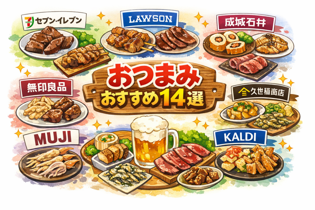 そこで今回は、セブン-イレブン、ファミリーマート、ローソン、成城石井、無印良品、久世福商店、カルディの7店舗に絞り、各店舗2商品だけを厳選した。コンビニは現行の公式商品ページで確認できるもの、成城石井・無印・久世福・カルディは公式オンラインで継続販売やカテゴリ掲載が確認できるものを中心に選んでいる。カルディは公式オンラインの「おつまみランキング」があり、前日の売上数に基づく人気も確認できる。